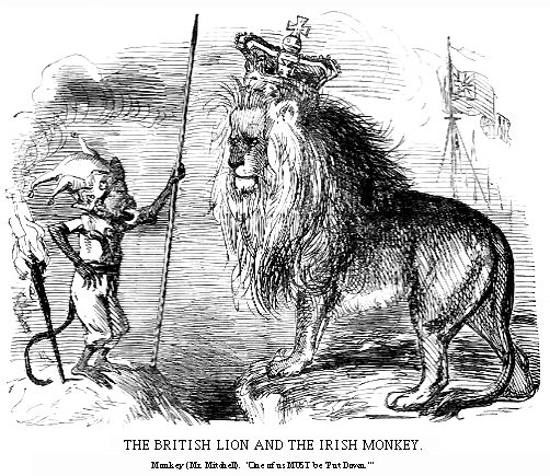 Leach, John. “The British Lion and the Irish Monkey”. Punch, 8 Apr. 1848. Website: http://adminstaff.vassar.edu/sttaylor/FAMINE/Punch/YI/IrishMonkey.gif