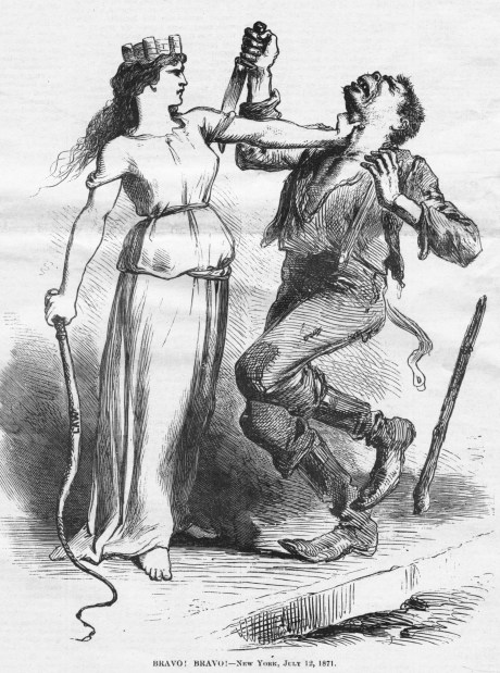 If Nast held a prejudice against the Irish, the threat of violence and the riot that resulted on this occasion only served to affirm for him the Irish’s natural inclination for savagery. For Nast, the incident cemented his inclination that an unhealthy alliance existed between Irish Catholics and the Democratic city boss, William M. Tweed. Nast’s conviction that Tweed’s overextended influence in governance, as evidenced by Tweed’s initial objection to the Protestant parade, inflamed trouble.