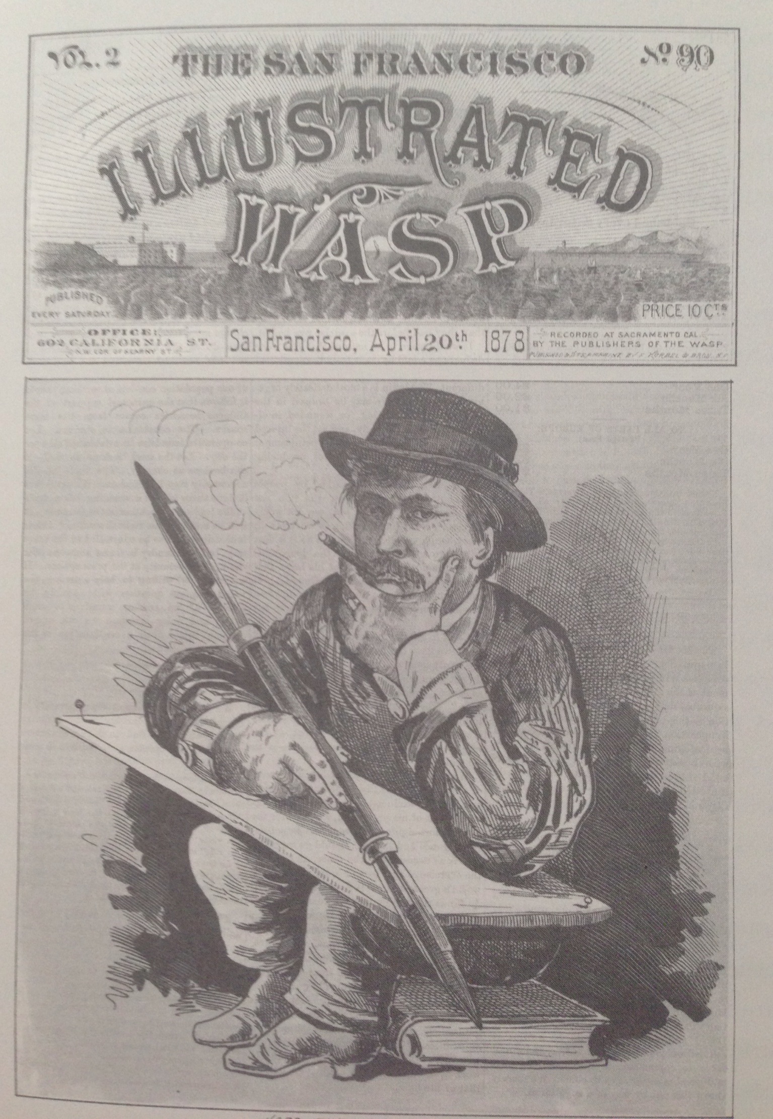 “In the midst of the explosive events of 1878, when hardly a day went without some extraordinary new political development, Keller drew himself on the cover of The Wasp, stumped for a cartoon idea” (West 41).